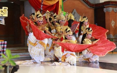 Tari Maskot bertemakan Dewi Saraswati di lounching bertepatan dengan pentas kreativitas siswa dan perpisahan siswa kelas IX SMPN 1 Banjarangkan tangga