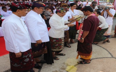 Penerimaan Penghargaan Widya Kusuma Provinsi Bali Tahun 2019 Tingkat SMP, Kepala SMPN 1 Banjarangkan I Nengah Suradnya, S.Pd,.M.Pd diserahkan lan