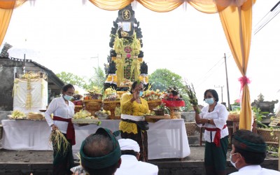 Bertepatan dengan Hari Purnama Kaulu Kepala Dinas Pendidikan Kabupaten Klungkung Drs. I Ketut Sujana, M.Pd.H menghadiri upacara Dewa Yadnya Pemelaspa