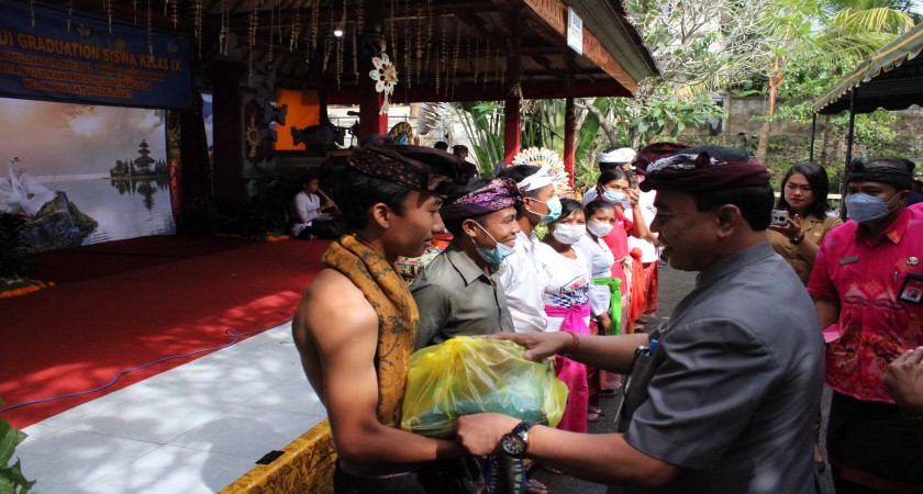 Kegiatan pelepasan siswa kelas IX T.P 2021/2022 disertai dengan pentas seni dan juga pembagian sembako kepada siswa kurang mampu yang diberikan langsung oleh Bapak Kadisdikpora Kab.Klungkung dan juga Komite dan undangan lainnya.